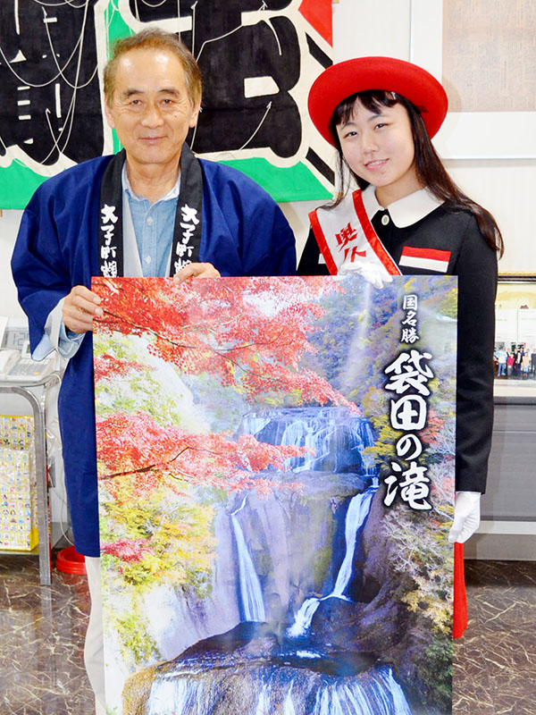 茨城県の北西部に位置する大子町観光協会は21日、さいたま市北区の埼玉新聞社を訪れ、これからベストシーズンを迎える秋の観光をアピールした。