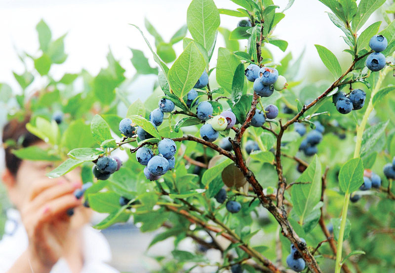 ブルーベリーの全国有数の産地として知られる美里町の観光農園で、早生種の摘み取り時期を迎えている。同町中里のファームてんとうむしでは、およそ1200坪の農園で約550本を栽培。この時期はデューク、シエラ、サミットなどの品種が楽しめる。