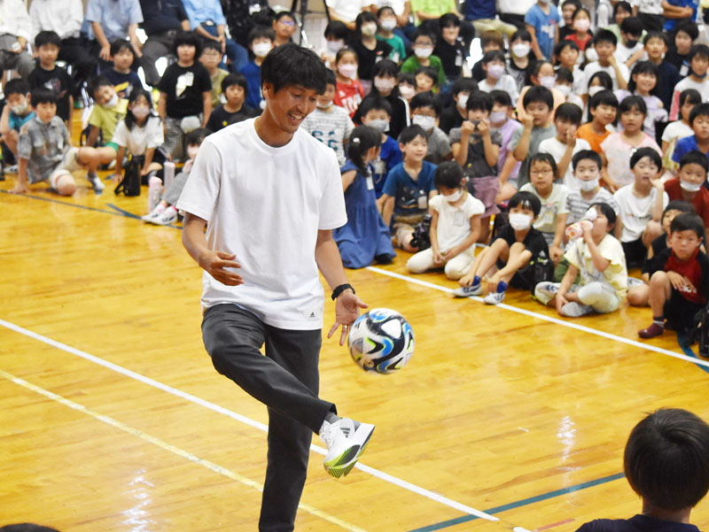 「別府小の誇り」サッカー原口選手が母校で講演 「やんちゃだけど涙もろい」かつての少年、後輩らにエール