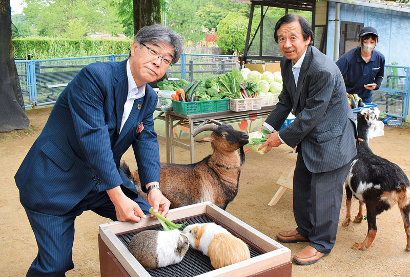 埼玉県さいたま市公園緑地協会とJAさいたまは23日、食品ロスを減らすための協定に伴う規格外野菜の贈呈式を緑区大崎の大崎公園子供動物園で行った。