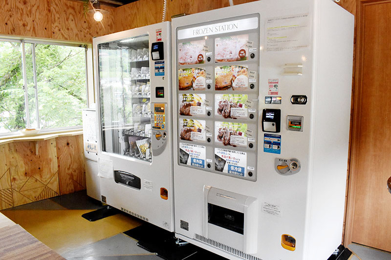 同自販機は、「横瀬ジビエ製造場」の鹿肉のミンチ(240グラム、2千円)やもも肉(120グラム、同)、そば処「紡(つむぎ)」の豚みそどぶろく漬け(2枚入り、千円)、焼き肉店「てっぽう屋」の秩父ホルモン(500グラム、2千円)、町民や町地域おこし協力隊員が製造した菓子などの商品計約15種を販売。今後も新商品が順次追加される予定。