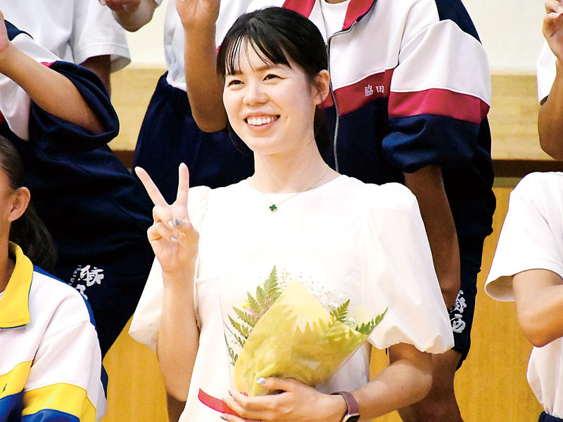 埼玉県川口市立戸塚西中学校(功刀幸代校長)で11日、越谷市出身で元競泳日本代表で、ロンドン、リオ五輪銅メダリストの星奈津美さんが「私の中学時代から今日まで」と題し講演した。