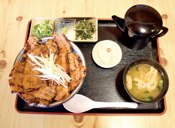 <ランチ>ボリューム満点、丼からはみ出る国産豚肉 狭山・炭火焼き豚丼松風、合い盛豚丼発祥の店