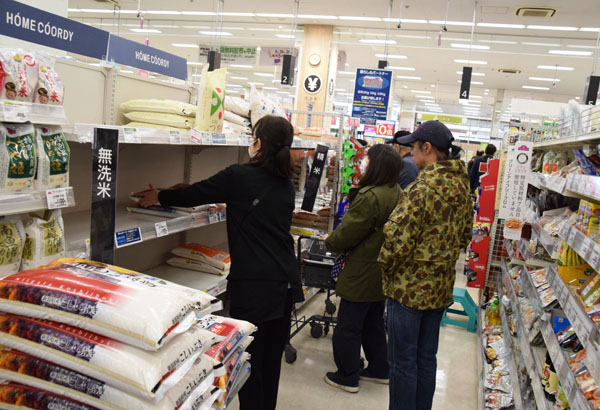 <新型肺炎>スーパーに来店客急増 多くの商品籠にレジに長蛇の列 スーパー側、落ち着いた行動を呼び掛け 2020/03/28/00:00 店内の米売り場では断続的に品薄となり、店員が補充を繰り返していた=27日午前、さいたま市内の食品スーパー この写真の記事に戻る