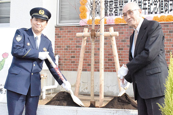 今年12月に開署40周年を迎える浦和西署が署内で記念植樹式を行い、地域住民や関係団体に感謝を伝えた。節目の年を記念して作製されたマスコットキャラクター「うらワニ氏」も披露され、今後も地域の治安維持に尽力していくことを誓った。