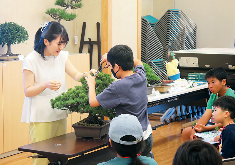 16歳の「博士ちゃん」が小中学生に解説! 日本盆栽協会・最年少会員の清水さん 盆栽美術館、剪定体験も