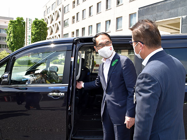 <新型コロナ>感染者の移送用車両、大宮のアパホテルに配置 埼玉トヨタが県に無償貸与 2020/05/15/00:00 埼玉トヨタ自動車の嶋田光剛社長(右)が大野元裕知事に移送用車両の車内を説明した=14日午後、県庁 この写真の記事に戻る