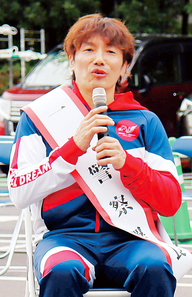 埼玉県警浦和西署は、秋の全国交通安全運動初日の21日、さいたま市中央区の「イオンモール与野」で出発式を実施した。2000年のシドニー五輪日本代表でプロトランポリン選手の中田大輔さん(49)を一日警察署長に迎えた。