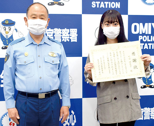 振り込め詐欺を未然に防いだとして、大宮署は19日、ファミリーマート大宮本郷町店のアルバイト町田理恵子さん(21)に感謝状を贈呈した。