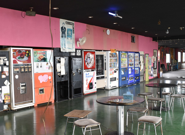 店内には昭和をほうふつとさせる古いゲーム機や自動販売機が並ぶ。マニアの間で「御三家」と称される、うどん、トーストサンド、ハンバーガーのレトロ自販機は開業当初から健在。県内唯一の「御三家」設置店ということもあって近年脚光を浴び、全国から多くの若者が昼夜を問わず集まった。