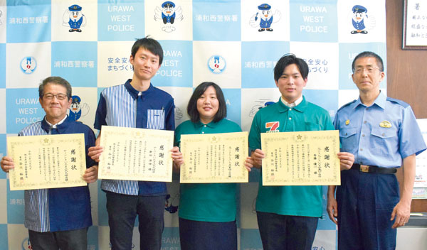 振り込め詐欺を未然に防いだとして、浦和西署は9日、コンビニ2店舗とその店員らに感謝状を贈呈した。