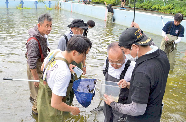 昆虫好きの市長も夢中、川口で水生昆虫を調査 プールからトンボの幼虫を救出、公園の池に放流 2020/06/14/00:00 捕まえたヤゴを見る奥ノ木信夫市長(手前右から2人目)ら=12日、川口市芝園町 この写真の記事に戻る
