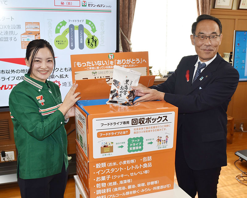 セブン全国初、さいたま市120店でフードドライブボックス設置へ 企業や各家庭が入れた食品、子ども食堂へ 2023/10/20/19:34 フードドライブボックスに食品を入れる大野知事(右)=19日、県庁 この写真の記事に戻る