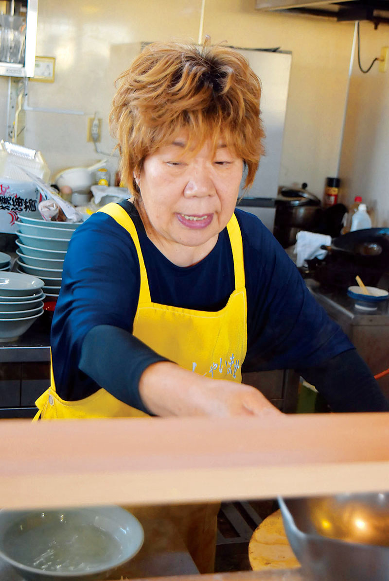 渡辺さんは同市出身。見沼中学校卒業後、保育園や病院で働き、結婚して3人の子どもにも恵まれた。大勢の人に料理を作ることが好きだったこともあり、ラーメン店を始めることに。口コミで人気が広がっていき、あっという間に人気店となっていった。靴を脱いで上がる店内はアットホームな雰囲気が漂い、地域住民たちから愛されている。