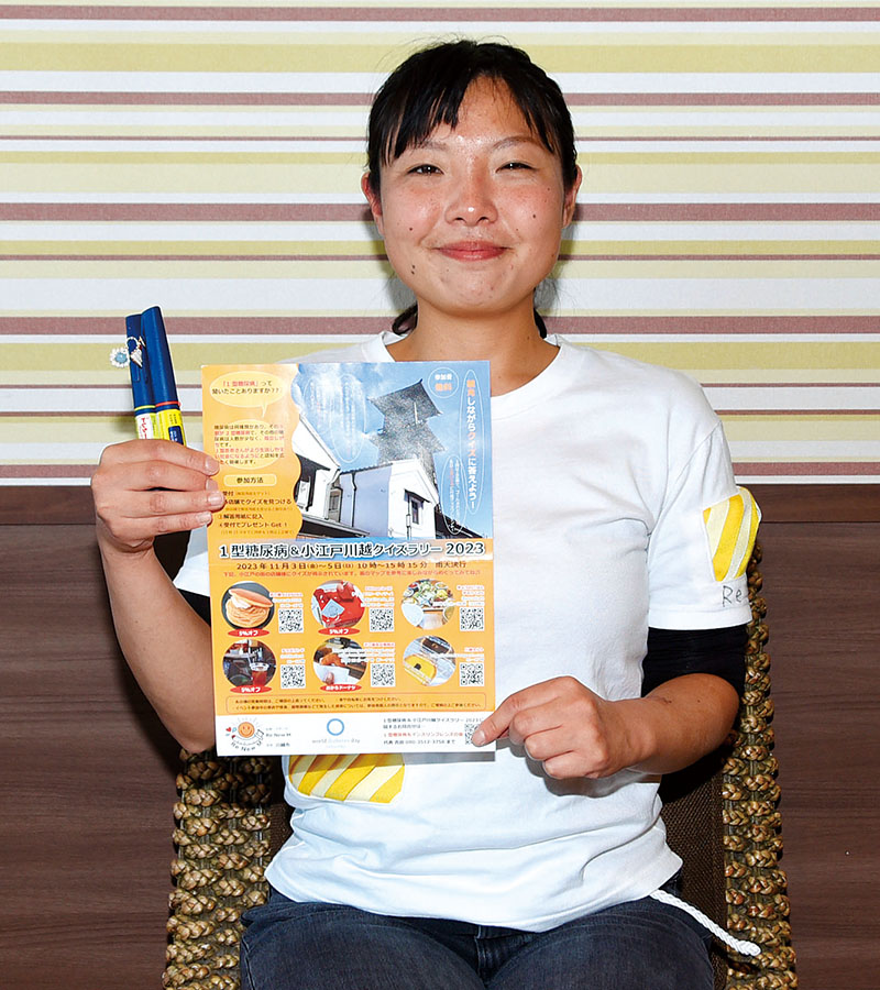 クイズラリーは、川越市内に住む1型糖尿病患者の吉田恵さん(36)が企画した。吉田さんは5歳で発症。毎日7回ほどのインスリン自己注射を行っている。注射は上腕や腹など、皮下脂肪の多い部位に打つ。不便を感じていた吉田さんは、注射する場所にスリットがあるTシャツをデザイン。ウェブやイベントで販売する事業を2020年に立ち上げた。取り組みを始めてみて、「どのような病気なのか、まだまだ知られていない」と実感したという。