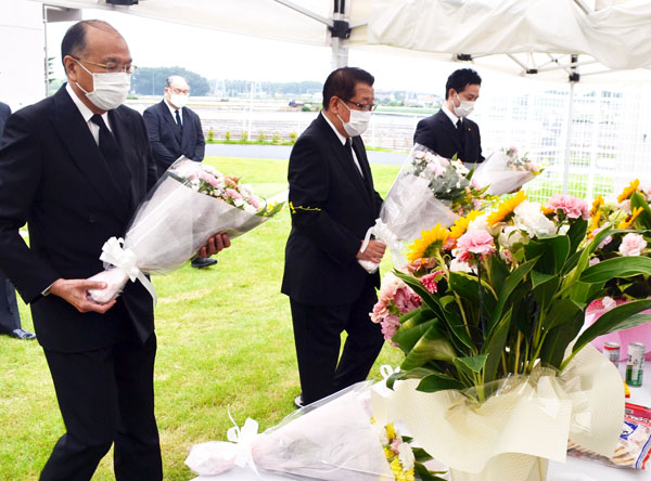ふじみ野市大井武蔵野の市営「大井プール」で2006年7月、所沢市の小学2年生戸丸瑛梨香さん=当時(7)=が吸水口に吸い込まれ死亡した事故で、ふじみ野市の高畑博市長ら市関係者は発生から14年目に当たる31日、プール跡地に隣接した市立スポーツセンター総合体育館敷地内で献花し、戸丸さんの冥福を祈るとともに、悲惨な事故を二度と起こさないための安全管理の徹底を誓った。