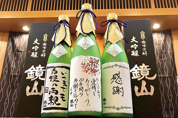 • オリジナルメッセージを印字した日本酒が夕食の席で提供される