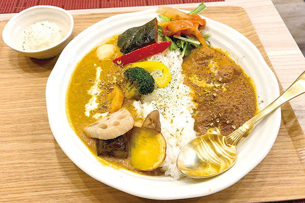 美と健康を大切にするカレー専門店として、熊谷駅から徒歩1分の駅近に出店したのは昨年5月。吟味したスパイスを使った、野菜たっぷりのヘルシーなカレーは癖になる味。胃にもたれないのは、小麦粉を使わないからだ。
