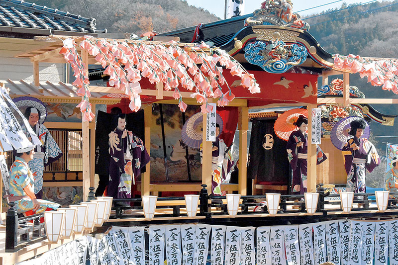 神事前には、張り出し舞台の屋台で、町立三田川小学校(桜井隆夫校長、児童30人)の6年生が「白浪五人男 稲瀬川勢揃(そろ)いの場」を、上飯田若連歌舞伎が「菅原伝授手習鑑 吉田社頭車引之場」の歌舞伎を熱演し、見物客から惜しみない拍手が送られた。