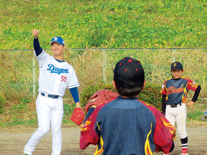 プロ野球・中日の清水達也投手(24)が16日、埼玉県深谷市上敷免の明戸グラウンドで、硬式野球の深谷ボーイズを相手に野球教室を行った。この日スタートした「清水達也後援会」(島崎祐子会長)が主催した。子どもたちは憧れのまなざしだった。
