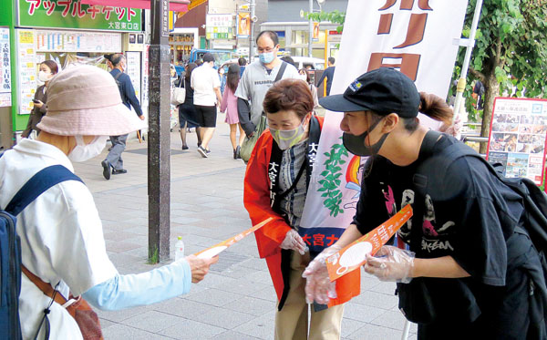 • 大宮駅周辺で行われたマップの配布活動=1日午後、さいたま市大宮区