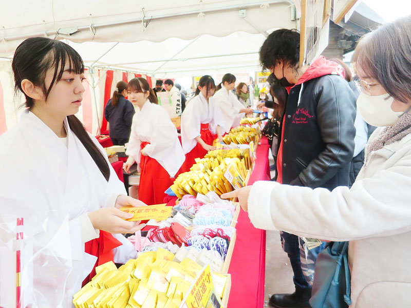 巫女(みこ)の諏訪琴乃さん(21)は「全国最強開運お守りは参拝者もよくご存じ。やはり『大開運守』の人気がすごい。青森県や兵庫県の方も来られた」と話す。初詣大祈願祭の人出は例年以上で、寺では「昨年は約50万人だったが、今年は70万人くらいになりそう」と予想している。