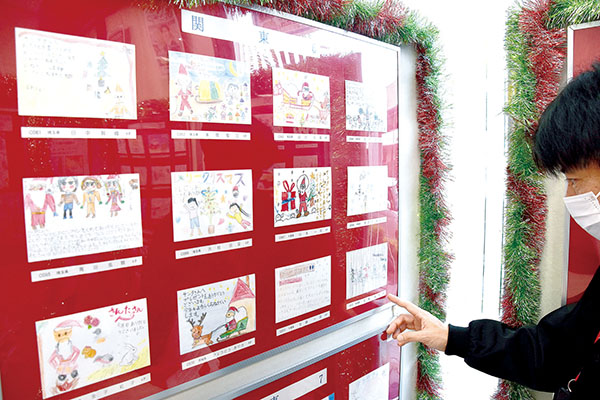 子どもたちらが思いを込めてしたためた「サンタさんへの手紙」作品展が13日、埼玉県さいたま市南区別所7丁目のさいたま中央郵便局で始まった。19日まで。