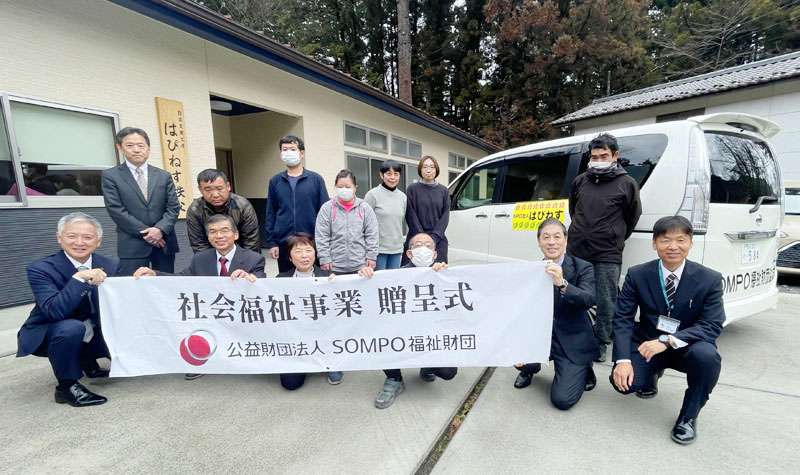 SOMPOホールディングス(東京都新宿区、奥村幹夫社長)が拠出するSOMPO福祉財団(西沢敬二理事長)は22日、秩父市のNPO法人はぴねすを訪れ、東日本地区を対象に公募した自動車購入費助成の贈呈式を行った。