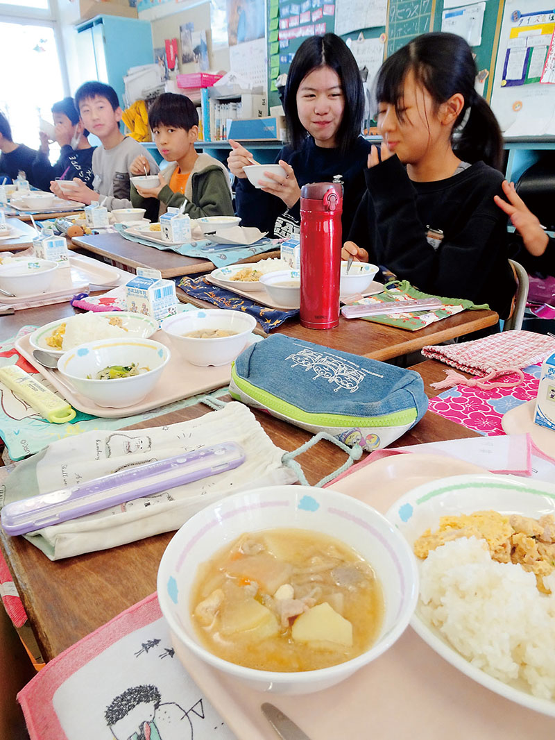 東所沢小では6年生が、小野塚勝俊市長やニンジンを栽培した同市本郷のオーガニックファーム所沢農人の川瀬悟さん(43)を囲み、有機野菜を多く使った豚汁をはじめ親子丼や牛乳などのメニューを楽しんだ。川辺怜生さん(12)は「ニンジンは新鮮でおいしかった。地元の人が作っていることを初めて知った」と喜ぶ。川瀬さんは「有機野菜を食べて感動してもらえるとうれしい」と話した。