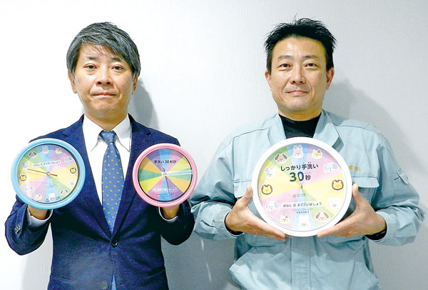 1897年創業の金属塗装加工業の豊工業(埼玉県さいたま市中央区)と、2016年設立のウェブ・映像などのデザイン制作会社・シャイニー(同市浦和区)は1日から、事業連携により、新型コロナ対策用の新商品「しっかり手洗い30秒タイマー」を発売した。