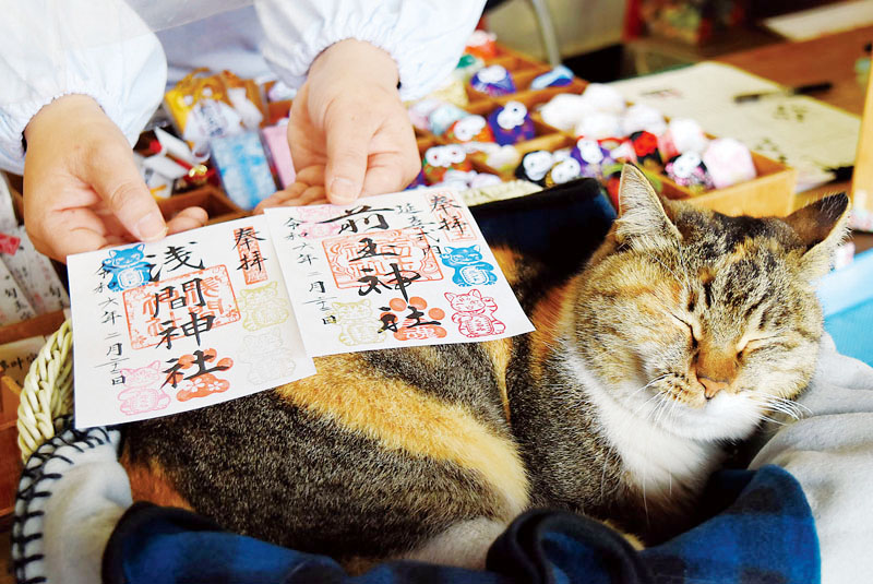 2月22日は「ニャン、ニャン、ニャン」の語呂合わせで猫の日。行田市埼玉の前玉(さきたま)神社は21日、同神社の猫をあしらった特別限定御朱印の授与を開始した。