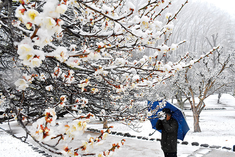 梅の雪化粧を写真に収めていた市内の60代男性は「まさかこれほど本格的に降るとは想像していなかった」と話していた。