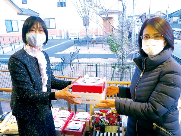 埼玉県加須市麦倉の地域みんなの交流の家で25日、スーパー・ヤオコー(本社・川越市)によるクリスマスケーキの贈呈式と、ほかの寄贈品のお菓子やランドセルなどの配布が行われた。NPO法人埼玉フードパントリーネットワークと、加盟する加須北子育て応援フードパントリー、県社会福祉協議会などが参加した。