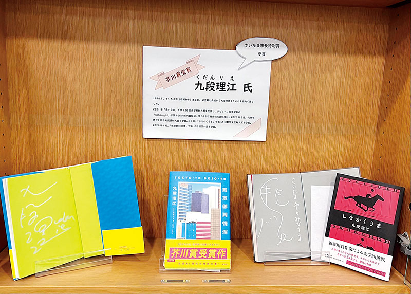 埼玉県さいたま市出身の作家で、「東京都同情塔」で第170回芥川賞を受賞した九段理江さん(33)の直筆サイン本が、市立3図書館に展示されている。九段さんは3月7日、市役所を訪れ、清水勇人市長から市長特別賞を贈呈された際にサインをしていた。