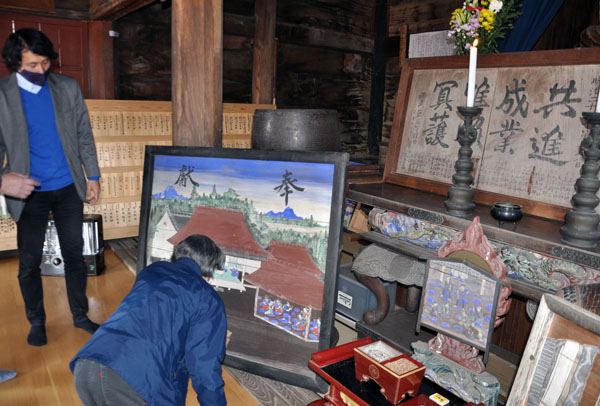 愛染堂は、読み方が同じことから藍染めの業者や、愛の文字から花柳界の関係者の信仰を古くから集めてきた。毎年2月に開いていた縁日が、今年は新型コロナウイルス感染防止のため中止に。その代わり尾高惇忠筆の奉納額と、北埼地域の業者が奉納した藍染め絵馬4枚(ともに市有形民俗文化財)を特別公開することになった。