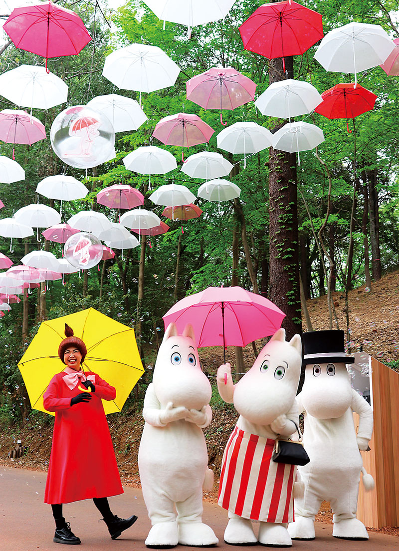 傘の花咲く200m…ムーミンバレーパークで「ムーミン谷とアンブレラ」 限定メニューやグッズも 7月7日まで 2024/04/21/10:49 色とりどりの傘の下に集まるキャラクターたち=18日、埼玉県飯能市宮沢のムーミンバレーパーク この写真の記事に戻る
