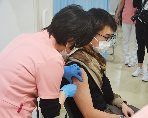 同センターでは、同日に180人が接種し、19日までに計約900人が接種する予定。山本樹生病院長は「計画していた通り、問題なく順調に進んでいる。ワクチンを受け発症リスクが減ることで、スタッフも気持ちに余裕が出るのでは」と話した。