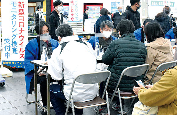 新型コロナウイルスの感染再拡大の兆候を早期に把握するため、繁華街などで幅広くPCR検査キットを配布する「モニタリング検査」が20日、埼玉県内の主要駅で行われた。
