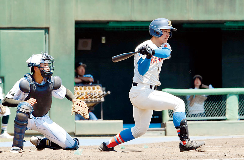 花咲徳栄―昌平 4回表花咲徳栄無死満塁、田島が右前に適時打を放つ=5日、県営大宮球場