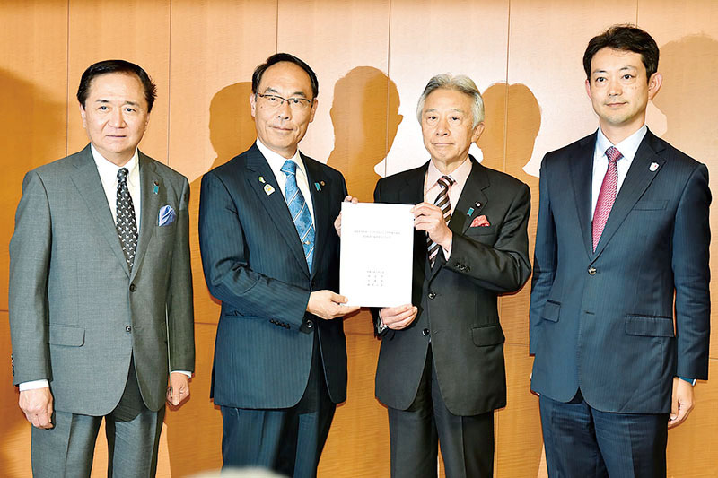 居住する地域にとらわれない子ども施策の実現および税源の偏在是正に関する国への申し入れを行うため、大野元裕知事は7日、熊谷俊人千葉県知事、黒岩祐治神奈川県知事と共に、盛山正仁文科相、こども家庭庁の加藤鮎子内閣府特命担当大臣、松本剛明総務相に要望書を手渡した。