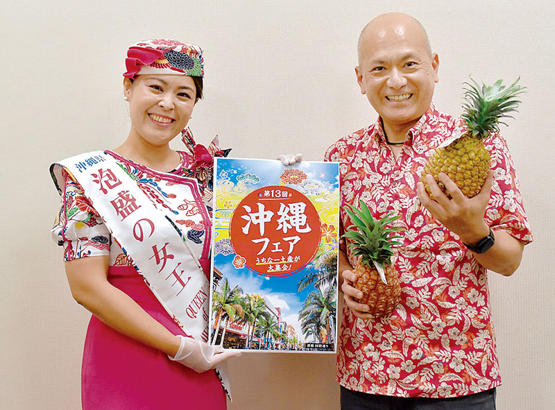 【動画】「夏になったら遊びに来て」 沖縄のパイナップルや紅いも生タルトが登場 フェアを「泡盛の女王」がPR イオンで9日まで 2024/06/07/07:51 沖縄県フェアをアピールする泡盛の女王前泊選香さん(左)と同県物産公社の島袋努沖縄営業所長=6日午後、さいたま市北区の埼玉新聞社 この写真の記事に戻る