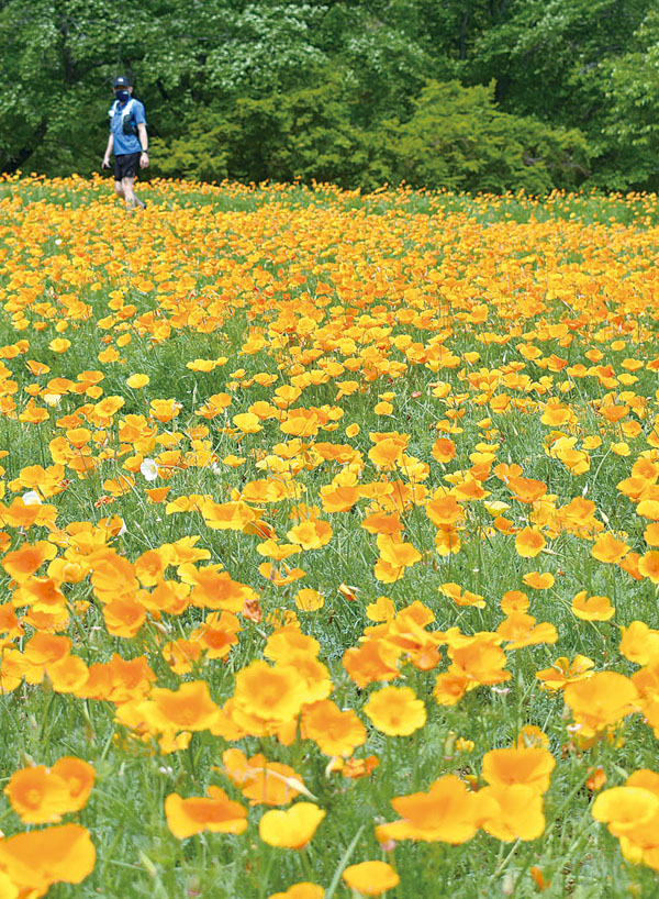 ハナビシソウは山腹や丘陵などに群生。多くの自生種が分布する米カルフォルニア州では州花とされ、カリフォルニアポピーとも呼ばれている。日が当たると咲き、曇りや雨天、夜間などには閉じる。