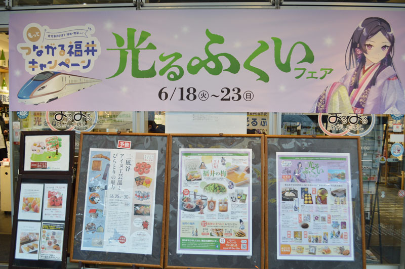 福井県は23日まで、大宮駅東口のまるまるひがしにほんで出張アンテナショップを開店している。今春の北陸新幹線福井・敦賀開業で身近になった沿線地域に福井の魅力を発信する「つながる福井キャンペーン」の一環。今年度は年4回を予定している。