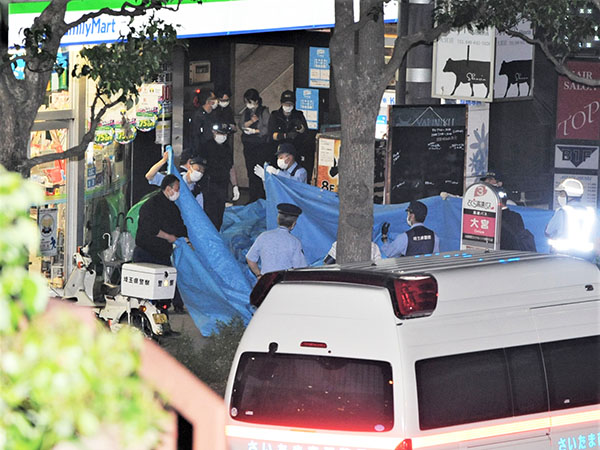 • ビニールシートを準備する捜査員ら=17日午後8時10分ごろ、さいたま市大宮区