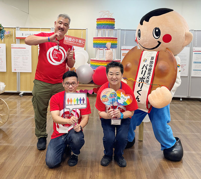親権者になれない…パートナーの子、一緒に育てても 切実な声、マルイで埼玉初“いいふうふ”になりたい展に寄せられる LGBTQ当事者ら困難多く「妊活したくても補助金どころか生殖医療すらできない」 2024/06/30/18:08 当事者の日常や困り事を紹介するパネル展示など=23日、草加市の草加マルイ 草加市観光大使「パリポリくん」と共に展示会を盛り上げる岩井紀穂さん(右)ら この写真の記事に戻る