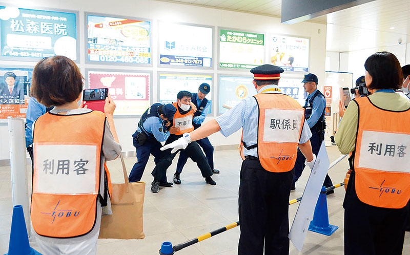 大声で威嚇、説得する駅員…不審者騒ぎを撮影する利用客 近づけないように誘導 東武線の駅で不審者対応訓練 「自分も写真や動画撮るかも」 2024/07/11/09:10 撮影する利用客の安全確保などを確認する訓練参加者ら=3日、さいたま市見沼区 この写真の記事に戻る