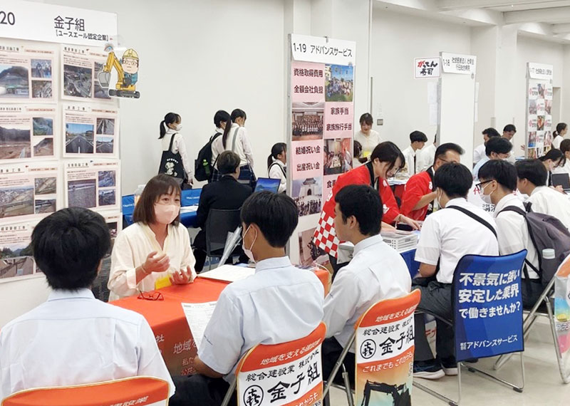 公共工事・民間工事を受け持つ総合建設会社の金子組(飯能市)は、若者の雇用管理状況が優良な企業への認定制度「ユースエール」の認定企業で、認定を取得してから毎年、合同企業説明会に参加している。同社の金子富佐子さんは「参加している企業一社一社それぞれに個性や社会への役割がある。ぜひいろいろな職業に興味を持ってほしい」と呼びかけた。