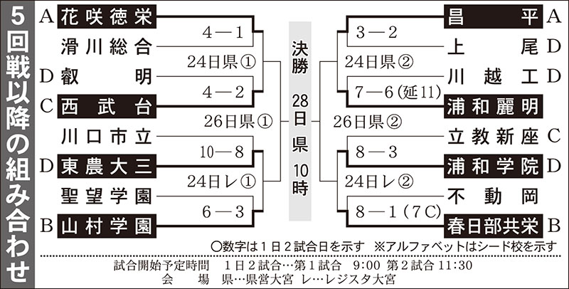 <高校野球>埼玉きょう準々決勝、花咲徳栄―西武台の見どころ 得点量産の花咲徳栄、1番斎藤や2番目黒に注目 15奪三振のエース大竹を誇る西武台、上位打線の出塁が鍵 2024/07/24/06:21 50メートル6・2秒の俊足で打線をけん引する西武台の3番神杉 5回戦以降の組み合わせ この写真の記事に戻る