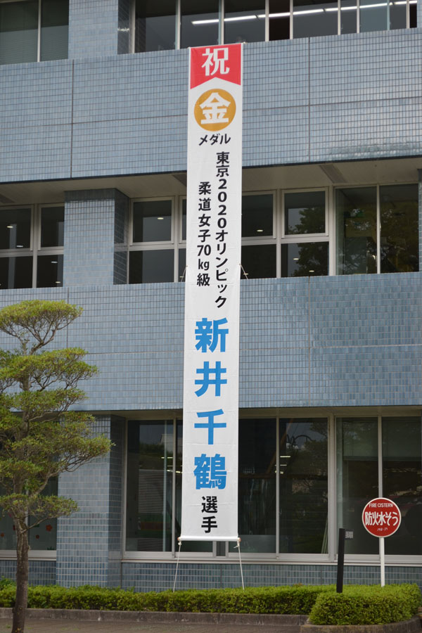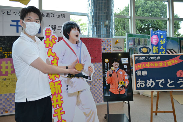 <東京五輪>涙止まらない祖父…信じて見守った孫娘が金メダル 埼玉の寄居、柔道・新井選手を町挙げ祝福 2021/07/30/00:00 町職員手作りの金メダルが新井選手の等身大パネルに飾られるなど喜びに包まれているロビー=29日、寄居町役場 金メダルを祝って飾られた懸垂幕=29日、寄居町役場庁舎東側 この写真の記事に戻る
