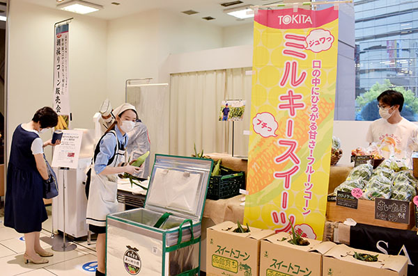 そごう大宮店、北海道の朝どりスイートコーン販売 北海道新幹線で埼玉・大宮駅などに直送 15日まで 2021/08/14/00:00 特設会場でミルキースイーツを買い求める来店客=13日、大宮区桜木町のそごう大宮店 この写真の記事に戻る